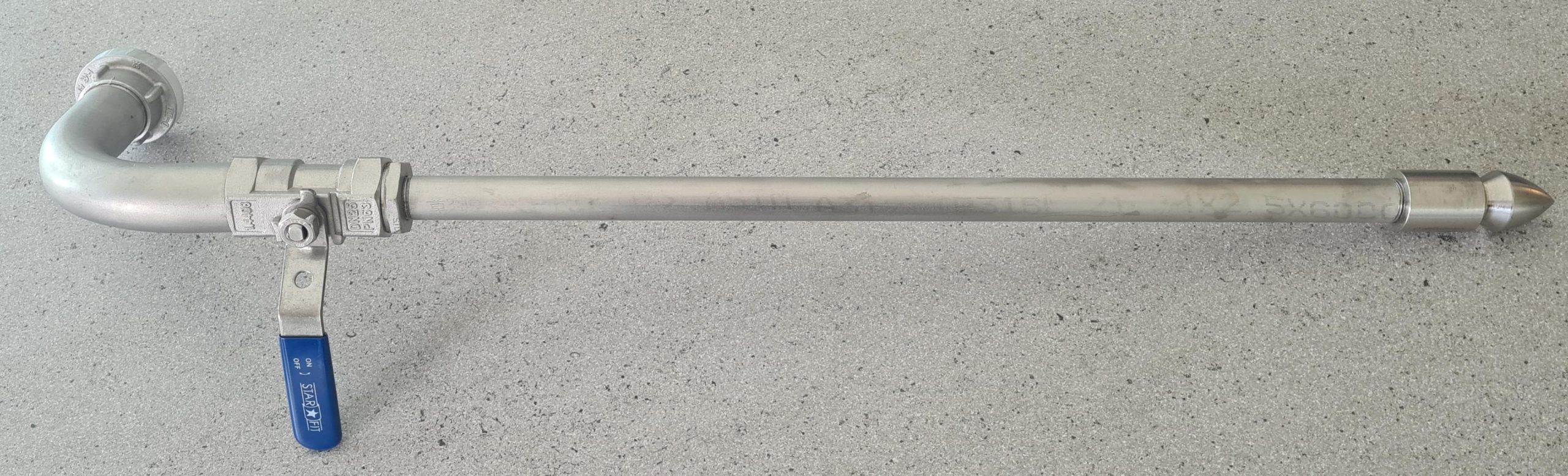 Durch ihre schlanke sehr robuste Spitze dringt die Lanze durch die Schwemmwirkung ohne Kraftaufwand in den Boden.